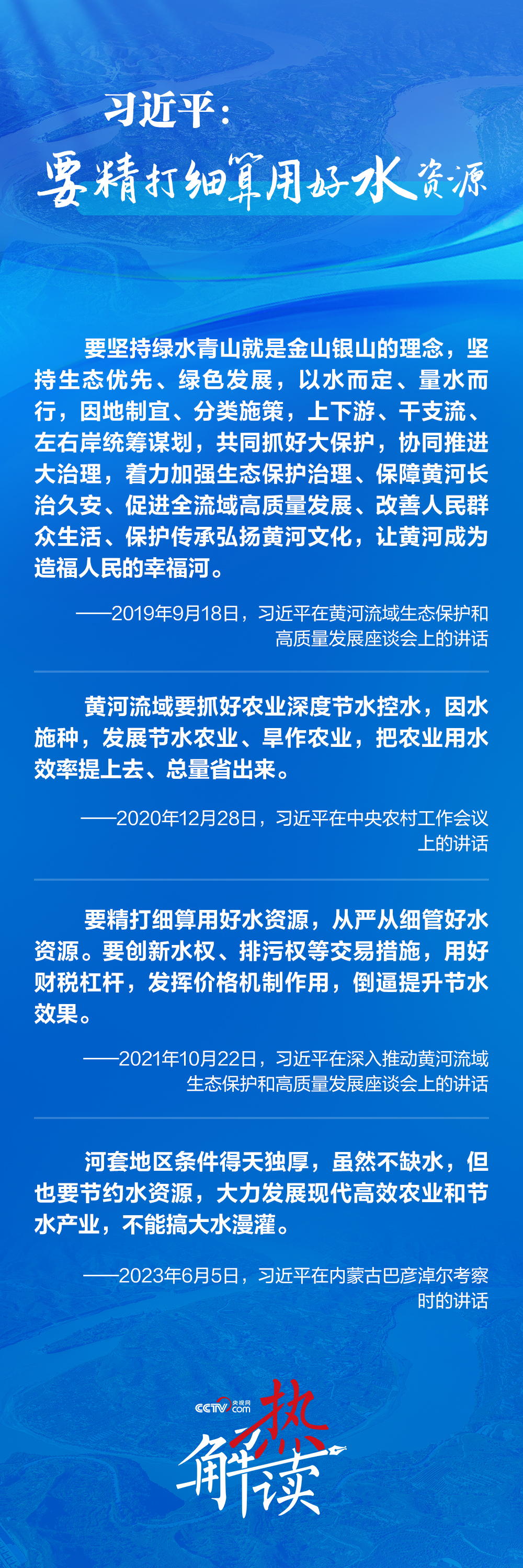 在本次座談會(huì)上,總書(shū)記就黃河水使用問(wèn)題明確要求“嚴(yán)守水資源開(kāi)發(fā)利用上限,細(xì)化以水定城、以水定地、以水定人、以水定產(chǎn)舉措”,“穩(wěn)步優(yōu)化調(diào)整‘八七’分水方案”。