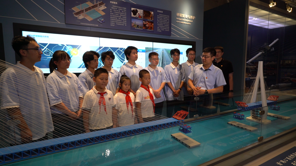 哈爾濱工業(yè)大學(xué)交通學(xué)院教師李順龍?jiān)谥袊?guó)橋梁博物館進(jìn)行課程思政與橋梁科普。新華社發(fā)(張潤(rùn) 攝)