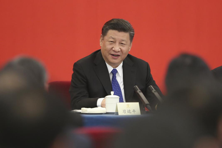 2018年3月4日下午,中共中央總書記、國家主席、中央軍委主席習近平看望參加全國政協(xié)十三屆一次會議的民盟、致公黨、無黨派人士、僑聯(lián)界委員,并參加聯(lián)組會,聽取意見和建議。 新華社發(fā)(盛佳鵬 攝)