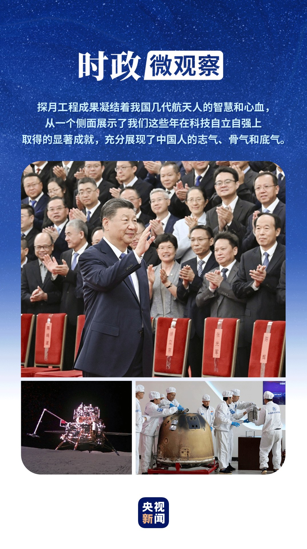 “探索浩瀚宇宙,建設(shè)航天強國,是我們不懈追求的航天夢。”習(xí)近平總書記發(fā)表重要講話,充分肯定探月工程特別是嫦娥六號任務(wù)取得的成就,寄望航天戰(zhàn)線的同志們再接再厲、乘勢而上,為建設(shè)航天強國再立新功。