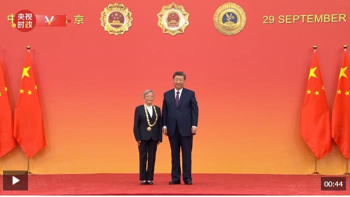 中華人民共和國國家勛章和國家榮譽(yù)稱號頒授儀式9月29日上午10時(shí)在人民大會堂隆重舉行。中共中央總書記、國家主席、中央軍委主席習(xí)近平向“人民醫(yī)護(hù)工作者”國家榮譽(yù)稱號獲得者路生梅頒授獎(jiǎng)?wù)隆?/p>