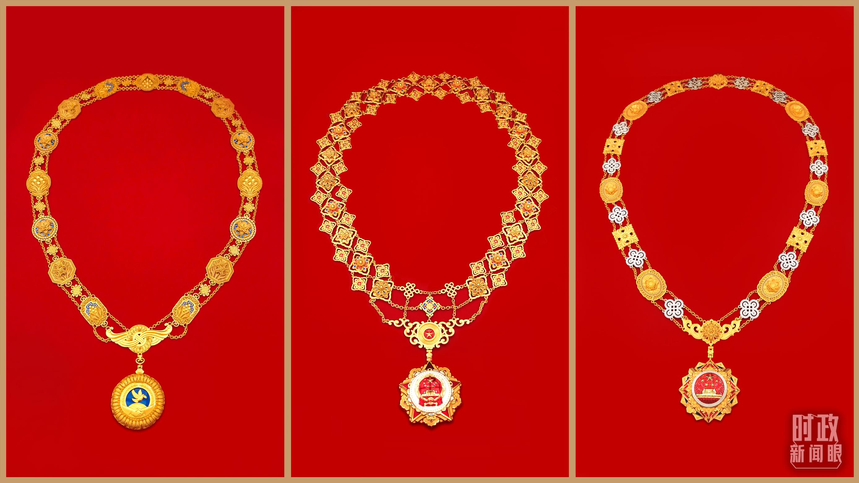 “共和國勛章”(中)、“友誼勛章”(左)和國家榮譽(yù)稱號獎(jiǎng)?wù)拢ㄓ遥#偱_央視記者郭鴻、鄂介甫拍攝)