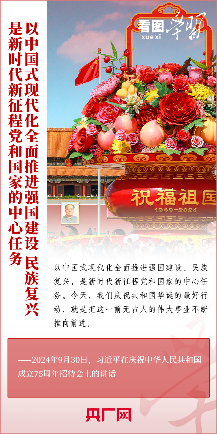 “經(jīng)過75年的艱苦奮斗,中國式現(xiàn)代化已經(jīng)展開壯美畫卷并呈現(xiàn)出無比光明燦爛的前景?!?月30日,慶祝中華人民共和國成立75周年招待會在京舉行。習近平總書記出席招待會并發(fā)表重要講話。總書記強調(diào),以中國式現(xiàn)代化全面推進強國建設(shè)、民族復(fù)興,是新時代新征程黨和國家的中心任務(wù)。我們慶祝共和國華誕的最好行動,就是把這一前無古人的偉大事業(yè)不斷推向前進。