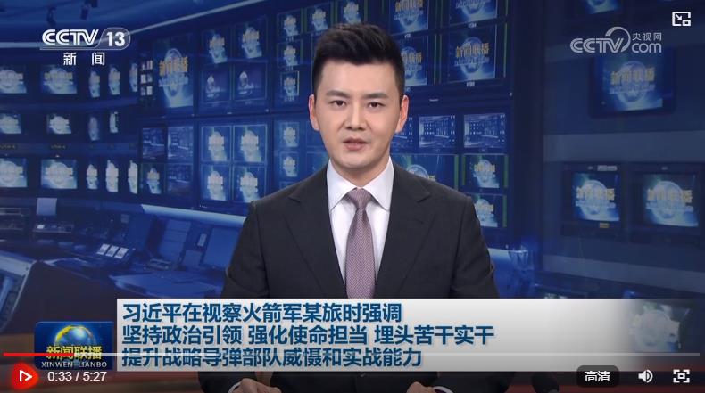 中共中央總書記、國家主席、中央軍委主席習近平17日到火箭軍某旅視察,強調(diào)要深入貫徹新時代強軍思想,貫徹新時代軍事戰(zhàn)略方針,把握戰(zhàn)略導彈部隊建設(shè)和作戰(zhàn)運用特點規(guī)律,堅持政治引領(lǐng),強化使命擔當,埋頭苦干實干,推進部隊建設(shè)高質(zhì)量發(fā)展,提升戰(zhàn)略威懾和實戰(zhàn)能力,堅決完成黨和人民賦予的各項任務(wù)。