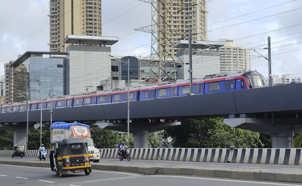這是在印度孟買北部已開通運(yùn)行路段拍攝的地鐵列車(2022年6月22日攝)。新開發(fā)銀行向印度孟買北部地鐵項(xiàng)目提供了貸款,項(xiàng)目第一部分已于2022年4月開通運(yùn)營,緩解了沿線地區(qū)的城市交通壓力。新華社發(fā)(阿西夫攝)