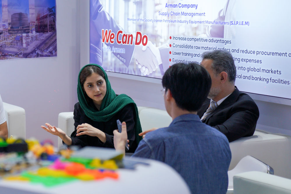 2024年9月15日,在位于北京的服貿(mào)會(huì)國家會(huì)議中心展區(qū),來自伊朗的參展商與中方參展人員交流。2024年一季度我國對(duì)伊朗市場(chǎng)采購出口同比增長15.2%。