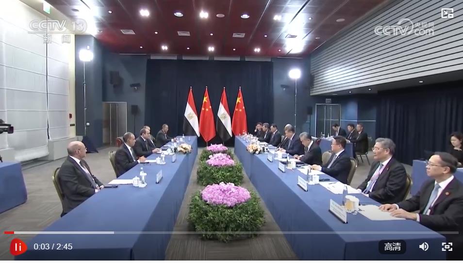 習(xí)近平祝賀并歡迎埃及首次作為正式成員參加金磚國家領(lǐng)導(dǎo)人會晤。習(xí)近平指出,今年是“中?;锇槟辍焙蛢蓢⑷鎽?zhàn)略伙伴關(guān)系10周年。中方堅(jiān)定支持埃及維護(hù)國家主權(quán)、安全、發(fā)展利益,愿同埃方做守望相助的真誠朋友、攜手發(fā)展的親密伙伴。雙方要繼續(xù)堅(jiān)定相互支持,鞏固政治互信,深化務(wù)實(shí)合作,高質(zhì)量共建“一帶一路”,密切人文交流,推動雙邊關(guān)系朝著構(gòu)建面向新時(shí)代的中埃命運(yùn)共同體目標(biāo)持續(xù)邁進(jìn)。中方也愿同埃方加強(qiáng)協(xié)調(diào),推動“大金磚合作”行穩(wěn)致遠(yuǎn),進(jìn)一步提升全球南方影響力和發(fā)言權(quán),維護(hù)發(fā)展中國家共同利益。