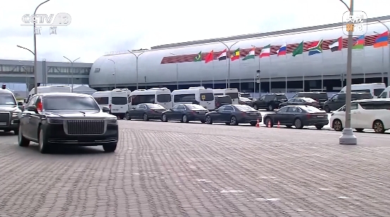 △“金磚+”領導人對話會現(xiàn)場的旗陣。(總臺央視記者程鋮拍攝)