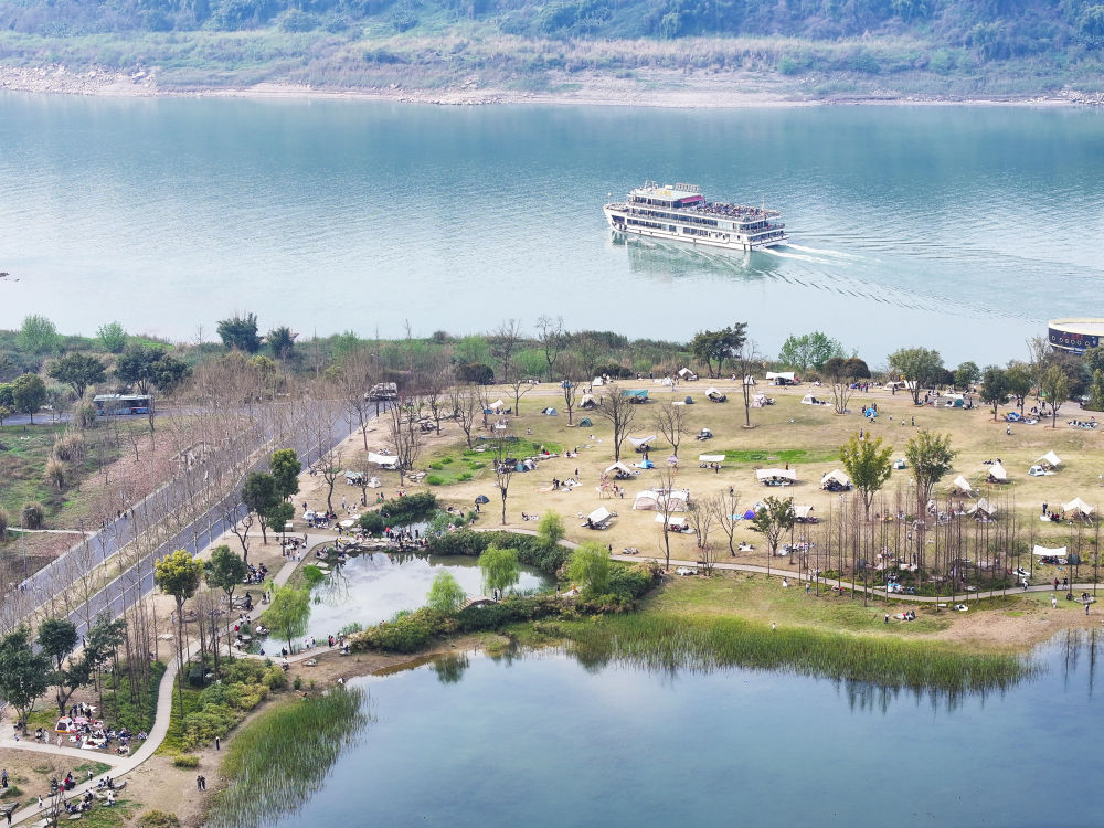 2024年3月16日,游客在重慶廣陽島東島頭一帶游覽、休閑(無人機(jī)照片)。廣陽島是長江上游最大的江心島。近年來,當(dāng)?shù)叵到y(tǒng)推進(jìn)自然恢復(fù)、生態(tài)修復(fù),豐富生物多樣性。2024年,重慶廣陽島生態(tài)修復(fù)項目成功入選聯(lián)合國“生態(tài)恢復(fù)十年”優(yōu)秀案例。