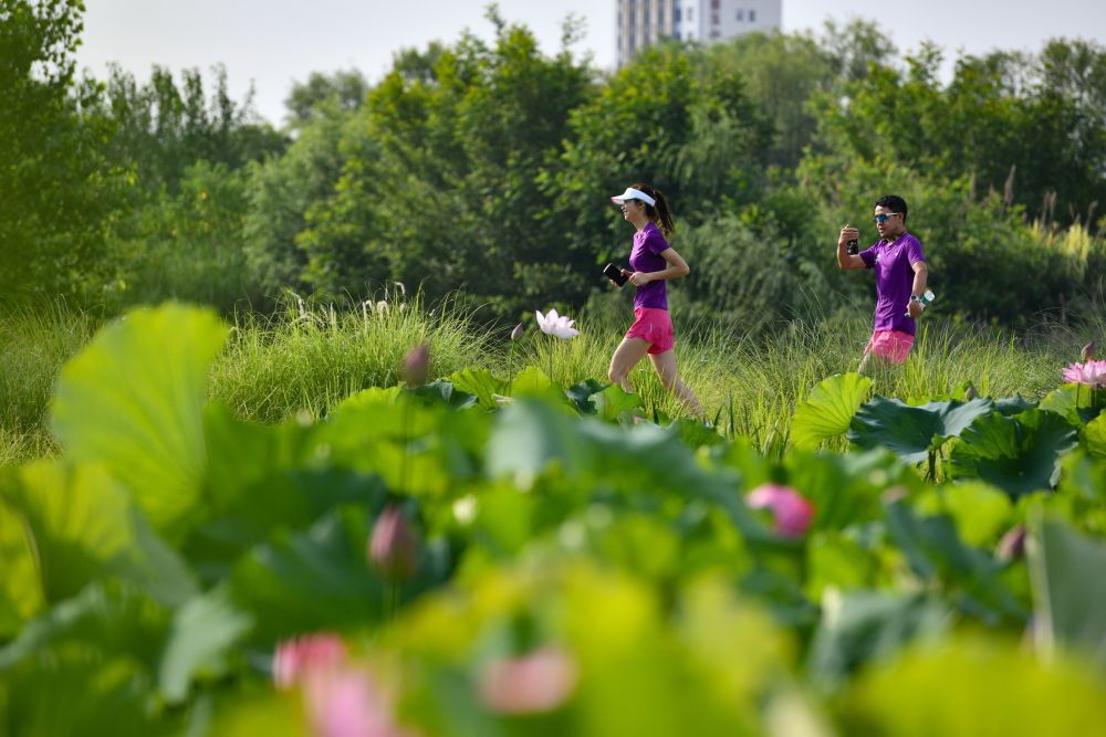 2024年6月23日,市民在陜西省漢中市天漢濕地公園內(nèi)運(yùn)動休閑。漢江是長江的最大支流,是南水北調(diào)中線工程的重要水源。近年來,漢中市加強(qiáng)對漢江源頭和沿岸濕地生態(tài)保護(hù)修復(fù),構(gòu)建人水和諧共生的美麗城市,確保“一泓清水永續(xù)北上”。