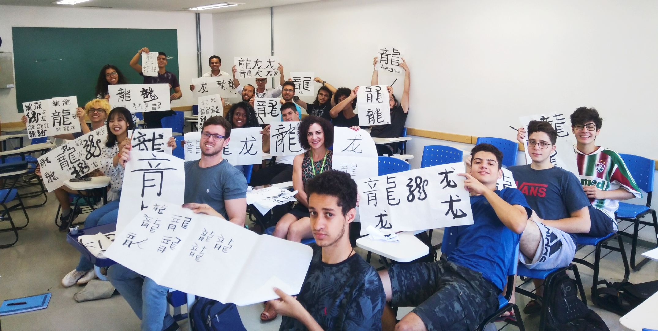 巴西學(xué)生在孔子學(xué)院體驗(yàn)中國(guó)文化。