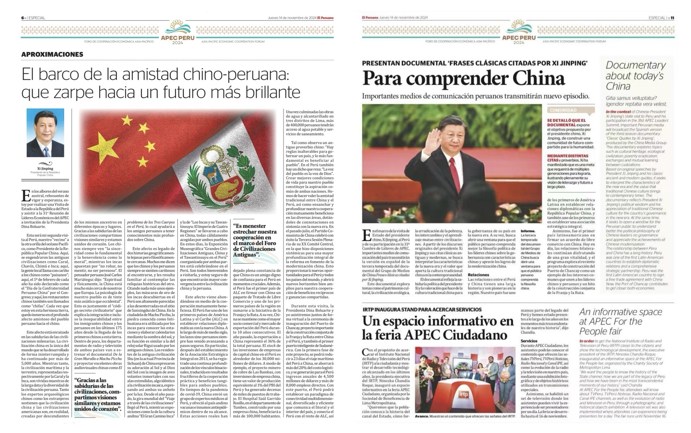 △《秘魯人報(bào)》刊發(fā)文章《<平“語(yǔ)”近人>專題片播出 更好地了解中國(guó)——秘魯各大媒體播出新一季片集》