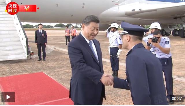 當?shù)貢r間11月19日下午,國家主席習近平乘專機抵達巴西利亞,開始對巴西進行國事訪問。