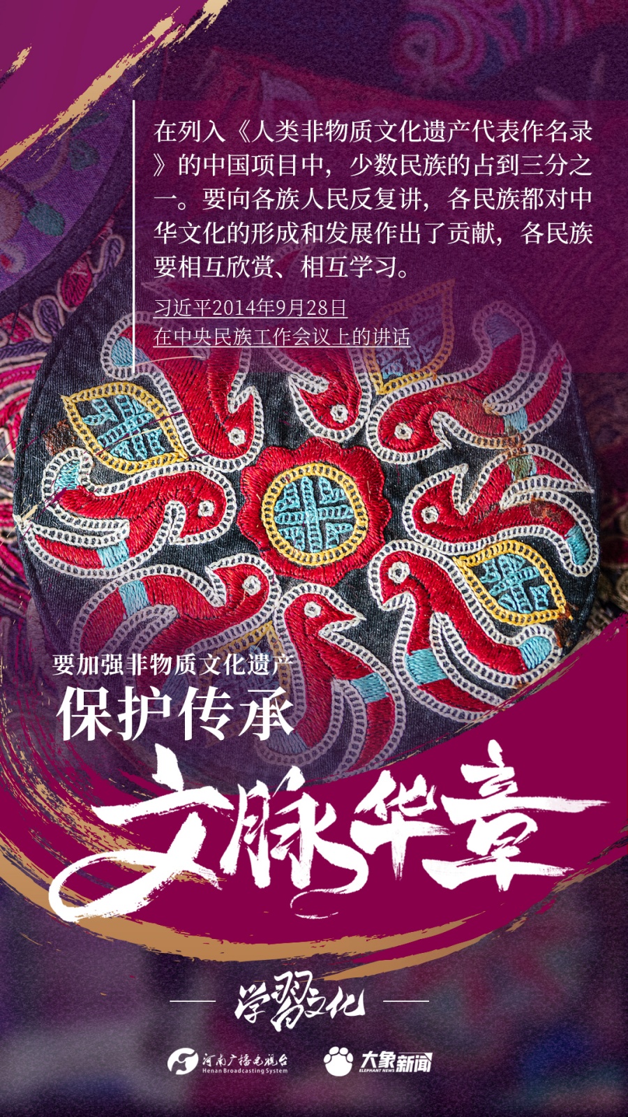 非物質(zhì)文化遺產(chǎn)是中華優(yōu)秀傳統(tǒng)文化的重要組成部分,是中華文明綿延傳承的生動見證,是我國各族人民寶貴的精神財富。習(xí)近平總書記十分關(guān)心非物質(zhì)文化遺產(chǎn)的保護(hù)傳承,多次強(qiáng)調(diào)“要扎實做好非物質(zhì)文化遺產(chǎn)的系統(tǒng)性保護(hù)”“培養(yǎng)好傳承人”等。大象新聞為您梳理,邀您一起學(xué)習(xí)、領(lǐng)悟、踐行。