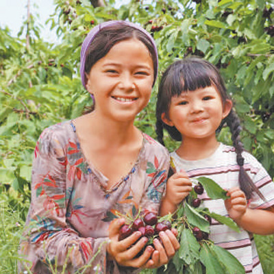 在中塔合建的吉薩爾櫻桃園,當(dāng)?shù)匦∨⒄故緞傉碌臋烟?。本?bào)記者 顏歡攝
