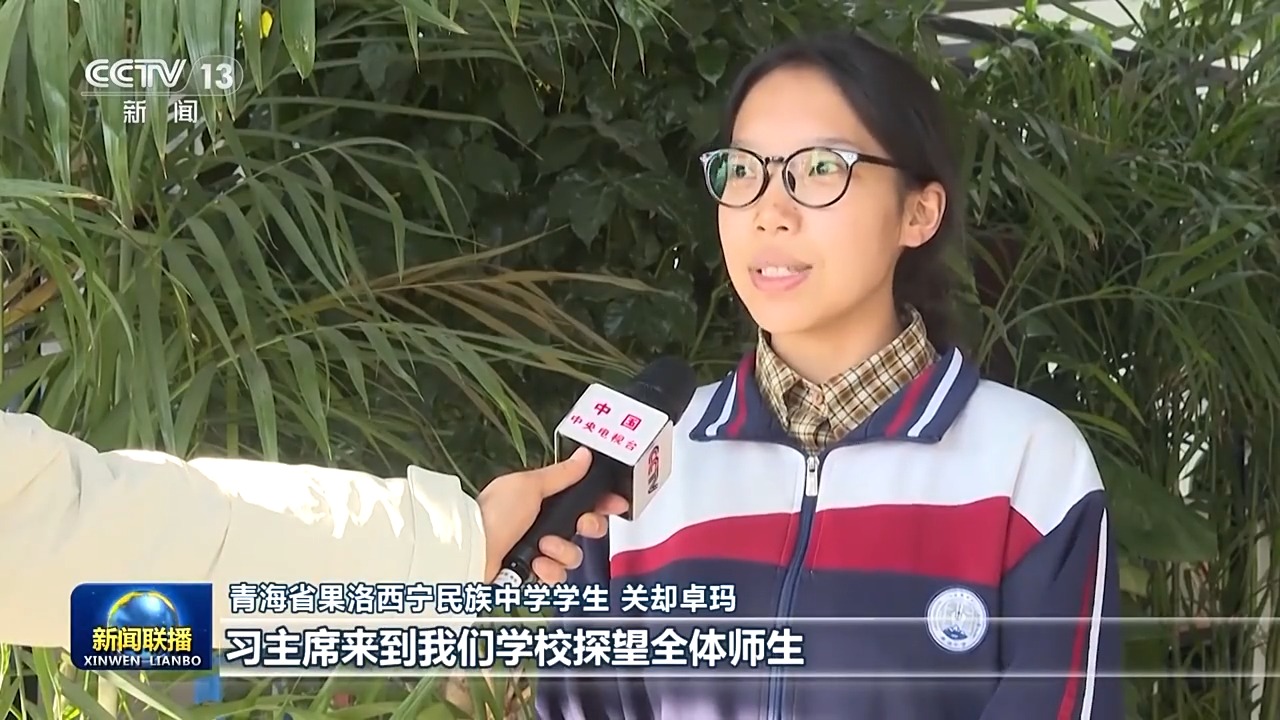 青海省果洛西寧民族中學(xué)學(xué)生 關(guān)卻卓瑪:去年的6月18日,習(xí)主席來到我們學(xué)校探望全體師生,對我們青年學(xué)生一代寄予了深切厚望。在新的一年里面,我一定要努力學(xué)習(xí)、發(fā)奮圖強。夢雖遙,追則能達,我相信自己一定能夠?qū)崿F(xiàn)夢想。