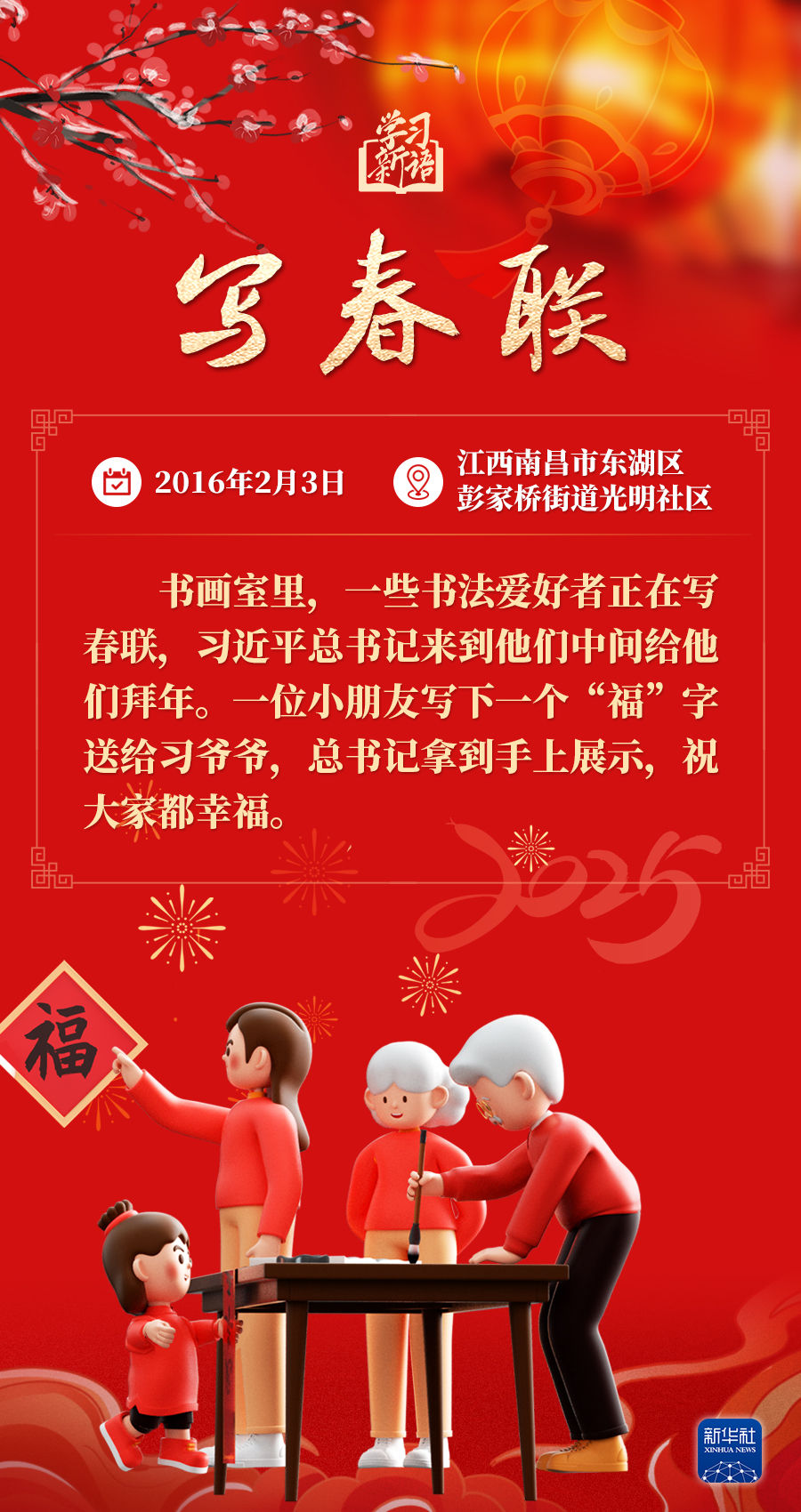 春節(jié)是中華民族的傳統(tǒng)節(jié)日。每當(dāng)春節(jié)來臨之際,習(xí)近平總書記都會走到群眾之中,送祝福、貼“福”字、賞民俗……和大家一起感受豐富多彩的年俗文化。