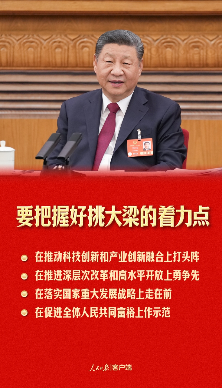 2023年1月,習近平總書記在江蘇當選第十四屆全國人大代表。連續(xù)三年到江蘇代表團參加審議,總書記都提到了“挑大梁”這個關鍵詞。