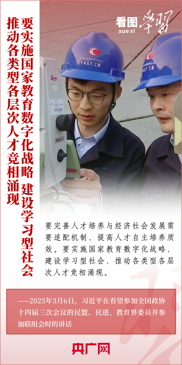 “建設(shè)教育強(qiáng)國(guó)、科技強(qiáng)國(guó)、人才強(qiáng)國(guó),是全黨全社會(huì)的共同責(zé)任?!?月6日,習(xí)近平總書記在看望參加全國(guó)政協(xié)十四屆三次會(huì)議的民盟、民進(jìn)、教育界委員并參加聯(lián)組會(huì)時(shí)發(fā)表重要講話??倳浘妥龊媒逃⒖萍?、人才工作作出深刻闡釋,強(qiáng)調(diào)必須深刻把握中國(guó)式現(xiàn)代化對(duì)教育、科技、人才的需求,強(qiáng)化教育對(duì)科技和人才的支撐作用,進(jìn)一步形成人才輩出、人盡其才、才盡其用的生動(dòng)局面。一起來學(xué)習(xí)!