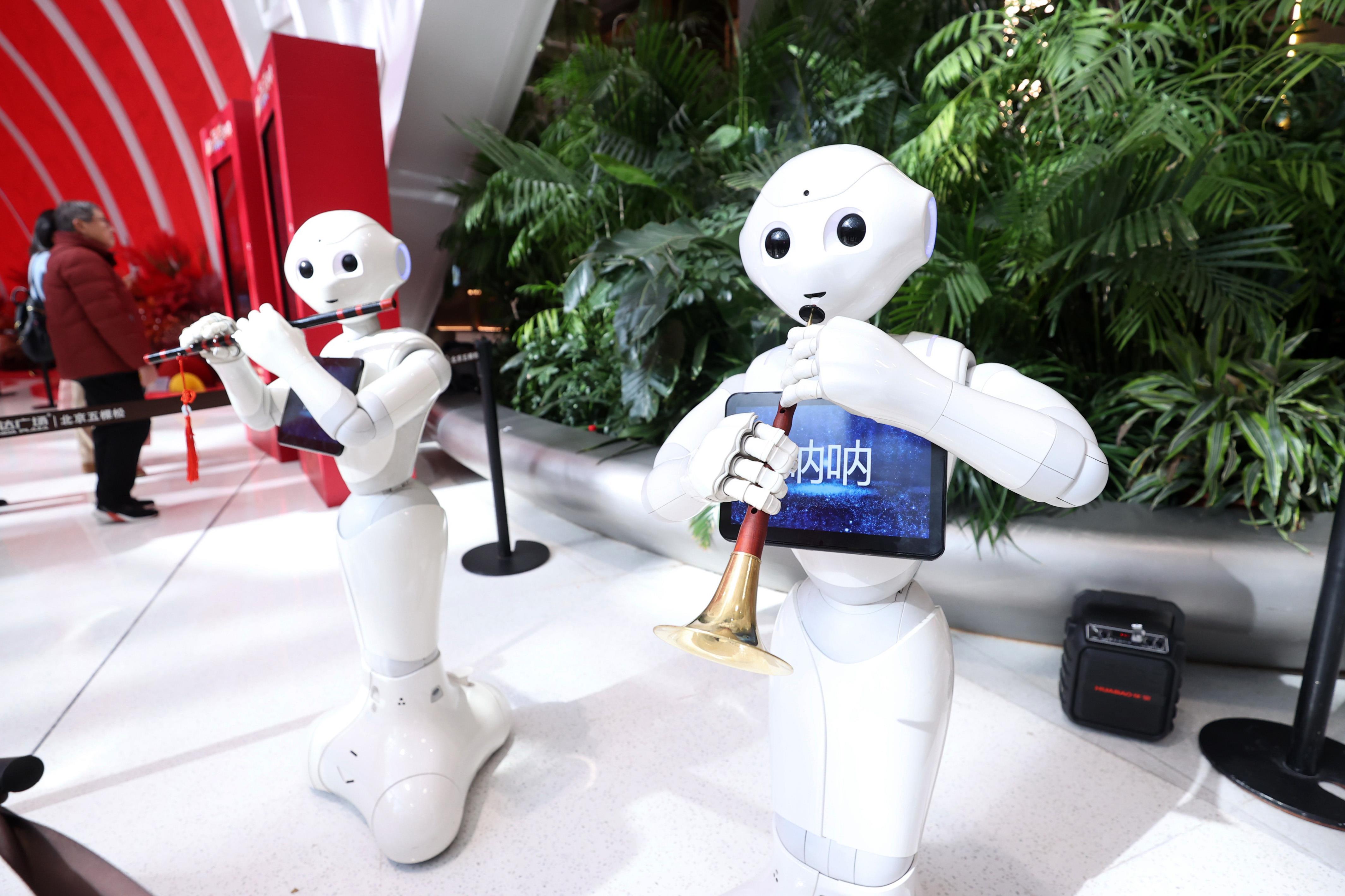 2025年2月2日,機(jī)器人在北京海淀新春科技廟會上表演。