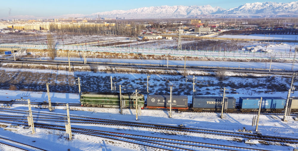 2024年12月25日,一列中歐班列經(jīng)霍爾果斯口岸駛向哈薩克斯坦(無(wú)人機(jī)照片)?;魻柟箍诎兜靥幰晾绻_克自治州、毗鄰哈薩克斯坦,是古絲綢之路北道上的千年驛站,也是近現(xiàn)代對(duì)外開(kāi)放的百年口岸,更是我國(guó)面向中亞、西亞乃至歐洲的重要物流通道。2024年,該口岸中歐(中亞)班列開(kāi)行量達(dá)8730列,同比增長(zhǎng)12.5%;貨物過(guò)貨量達(dá)1208.4萬(wàn)噸,同比增長(zhǎng)10.9%;通行班列線路總數(shù)超過(guò)80條,輻射境外18個(gè)國(guó)家的46個(gè)城市。