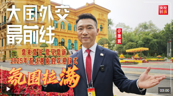 黃色的標(biāo)志性建筑,交相輝映的五星紅旗和金星紅旗,手持中越兩國(guó)國(guó)旗的小朋友……有沒(méi)有一種熟悉又親切的感覺(jué)?時(shí)隔一年多,習(xí)近平再次訪越,恰似走親戚、串門般自然??旄按髧?guó)外交最前線”的腳步,一同前往歡迎儀式現(xiàn)場(chǎng),感受這份熱烈與友好!
