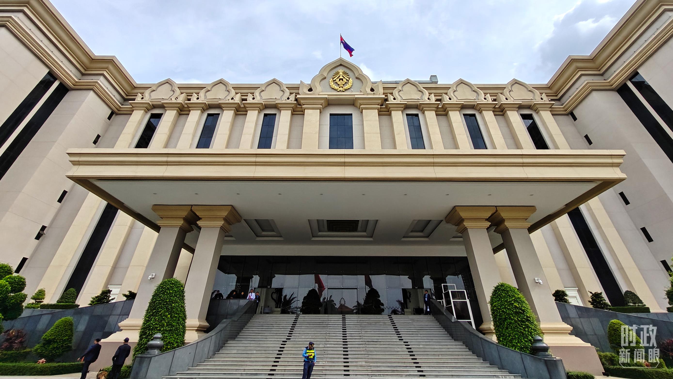 金邊和平大廈,習(xí)主席同洪森、洪瑪奈的會見會談在這里舉行。(總臺央視記者范一鳴拍攝)
