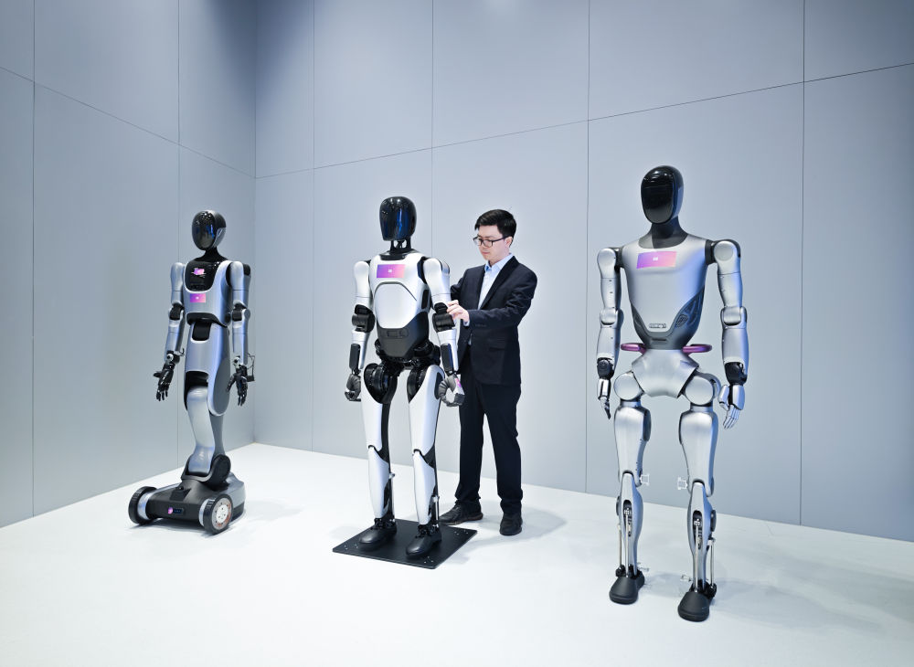 2025年4月29日,工作人員在“模速空間”調試人形機器人產品