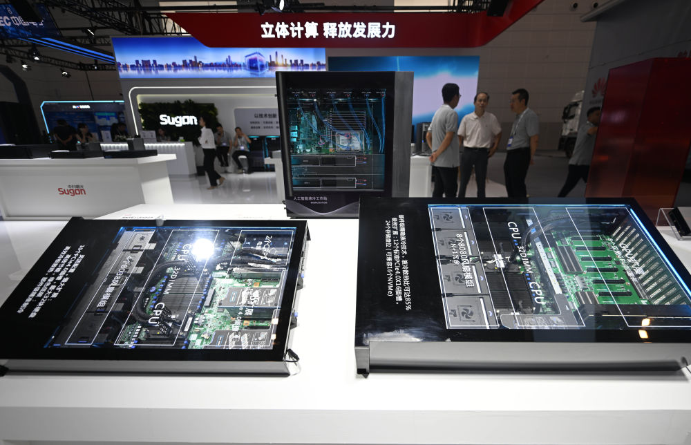 這是2024年6月20日在2024世界智能產業(yè)博覽會上拍攝的中科曙光展區(qū)的一臺人工智能服務器。