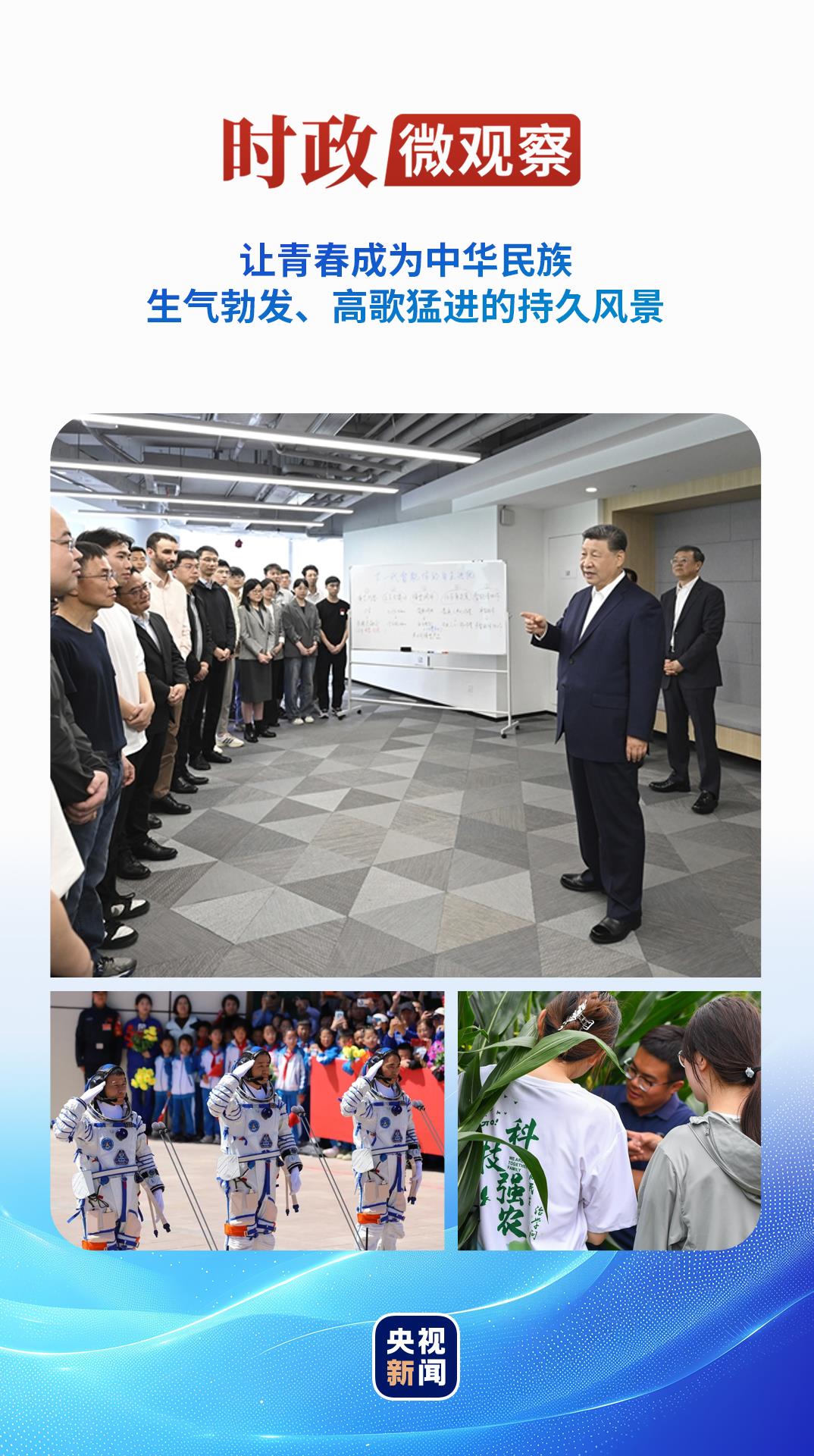 今年五四青年節(jié)前,習(xí)近平總書記再次來到年輕人中間。4月29日,在上海“模速空間”大模型創(chuàng)新生態(tài)社區(qū),總書記同青年創(chuàng)新人才親切交流,勉勵(lì)大家“把個(gè)人奮斗同國家前途命運(yùn)緊緊聯(lián)系在一起,跑好歷史的接力棒,在推進(jìn)中國式現(xiàn)代化的寬廣舞臺(tái)上綻放絢麗的青春光彩”。