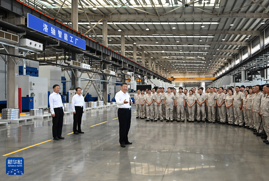 5月19日至20日,中共中央總書(shū)記、國(guó)家主席、中央軍委主席習(xí)近平在河南考察。這是19日下午,習(xí)近平在洛陽(yáng)軸承集團(tuán)股份有限公司智能工廠考察。新華社記者 謝環(huán)馳 攝