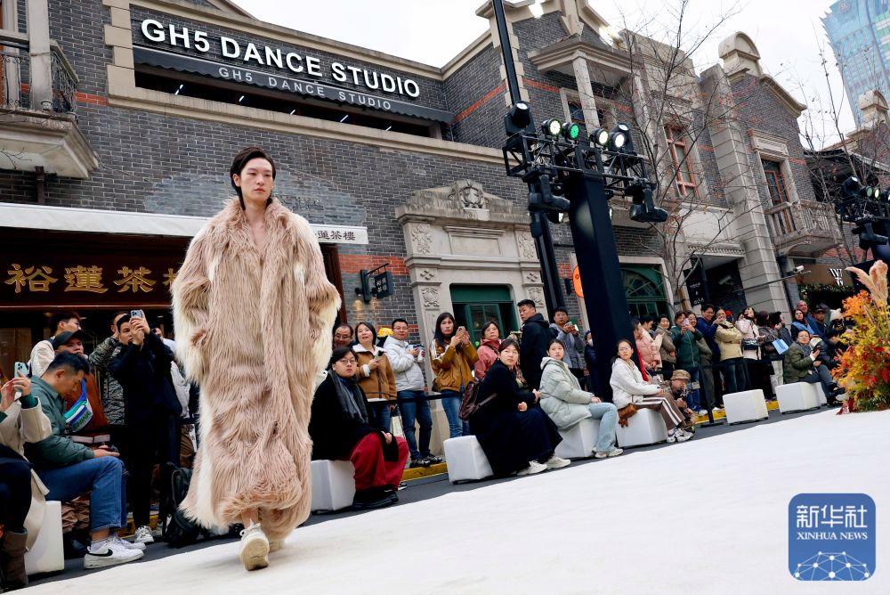 2024年12月7日,模特在“?!づ蓮垐@時(shí)尚文化周”中國青年設(shè)計(jì)師時(shí)裝秀上展示設(shè)計(jì)師服裝作品。時(shí)裝秀以張園建筑主色調(diào)與設(shè)計(jì)線條為靈感,百年石庫門建筑群落為背景,將茂名北路作為T臺秀場,獨(dú)具上海特色。
