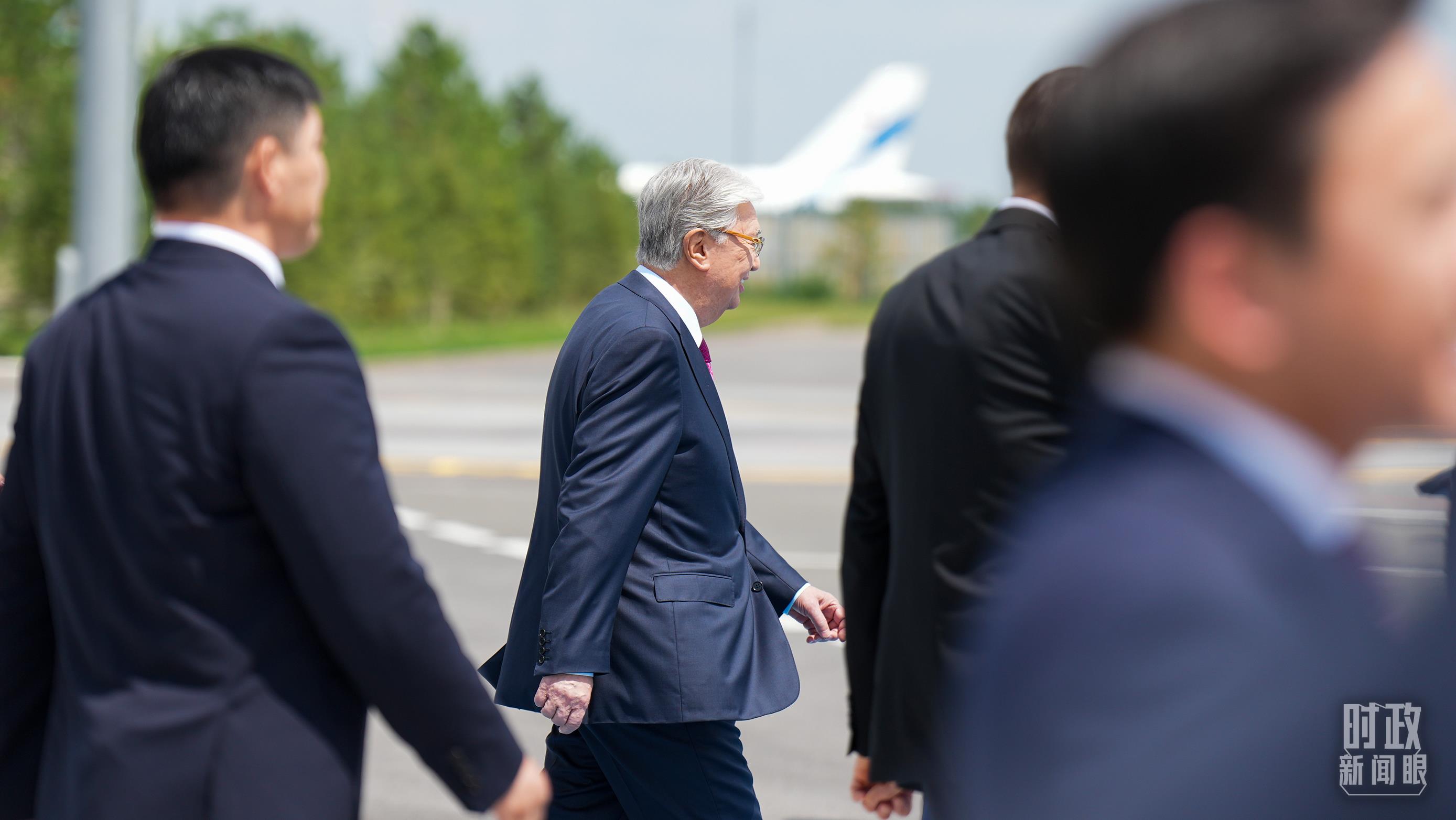 托卡耶夫總統(tǒng)在籌備中國—中亞峰會的繁忙日程中,率高級官員赴機場熱情迎接。