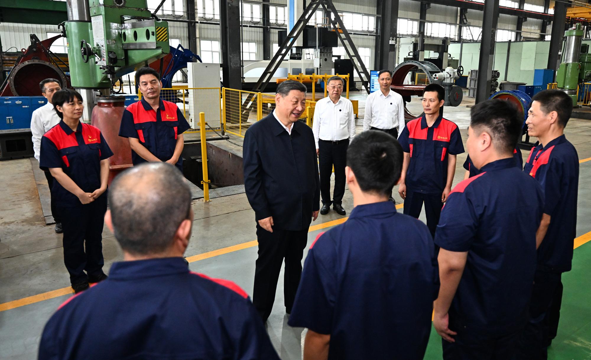 2025年7月7日,習(xí)近平總書記在山西陽泉閥門股份有限公司考察時(shí),同企業(yè)員工親切交流。