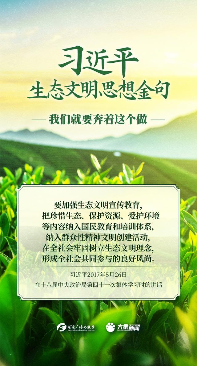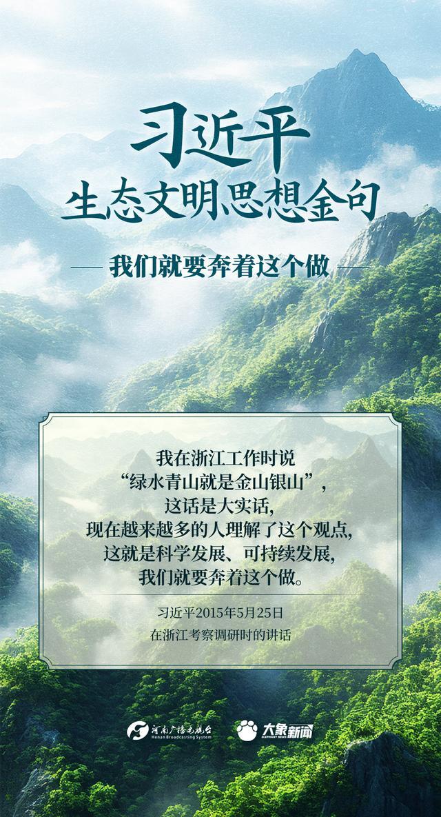 黨的十八大以來,習(xí)近平總書記把生態(tài)文明建設(shè)擺在治國理政突出位置,大力推動(dòng)生態(tài)文明理論創(chuàng)新、實(shí)踐創(chuàng)新、制度創(chuàng)新,創(chuàng)造性提出一系列新理念新思想新戰(zhàn)略,形成了習(xí)近平生態(tài)文明思想,對生態(tài)文明建設(shè)的時(shí)代之問、世界之問、人民之問作出的科學(xué)解答。大象新聞推出《習(xí)近平生態(tài)文明思想金句》系列策劃,今天推出《我們就要奔著這個(gè)做》。