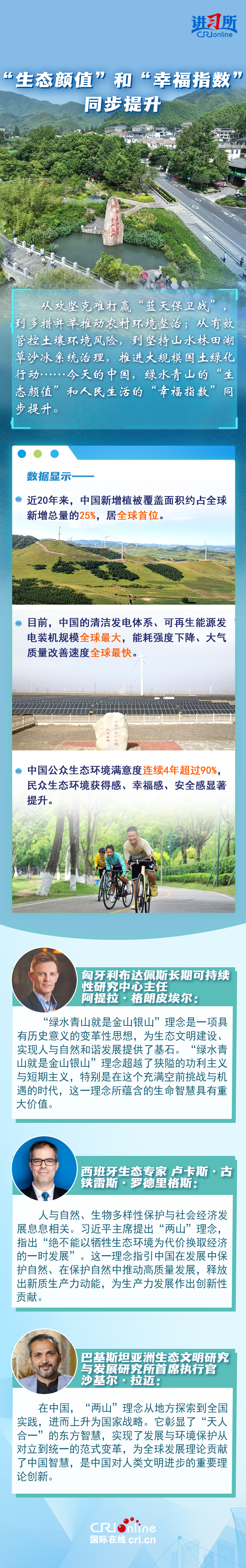 “從歷史長河來看,如果說我們這一代人能留給后人點什么,我看生態(tài)文明建設(shè)就是很重要的一個方面。生態(tài)文明建設(shè)最能給老百姓帶來獲得感,環(huán)境改善了,老百姓體會也最深?!?0年前,時任中共浙江省委書記的習近平在安吉余村考察時,肯定了余村下定決心關(guān)閉礦區(qū)、全面走綠色發(fā)展之路的做法,并首次提出“綠水青山就是金山銀山”重要理念,20年來,這一重要理念帶給中國大地一場革命性變化,直接推動美麗中國建設(shè)取得歷史性成就。