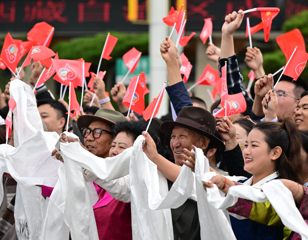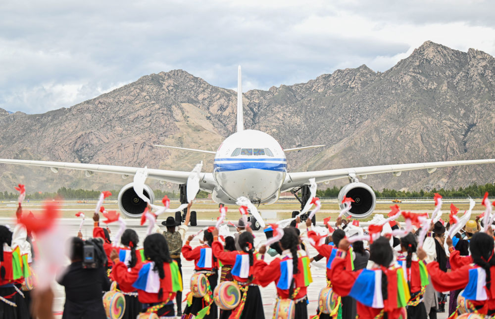 中共中央總書記、國家主席、中央軍委主席習(xí)近平率中央代表團(tuán)20日中午乘專機(jī)抵達(dá)拉薩,出席西藏自治區(qū)成立60周年慶?;顒?。習(xí)近平等在機(jī)場和拉薩市區(qū)受到西藏各族群眾的熱烈歡迎。