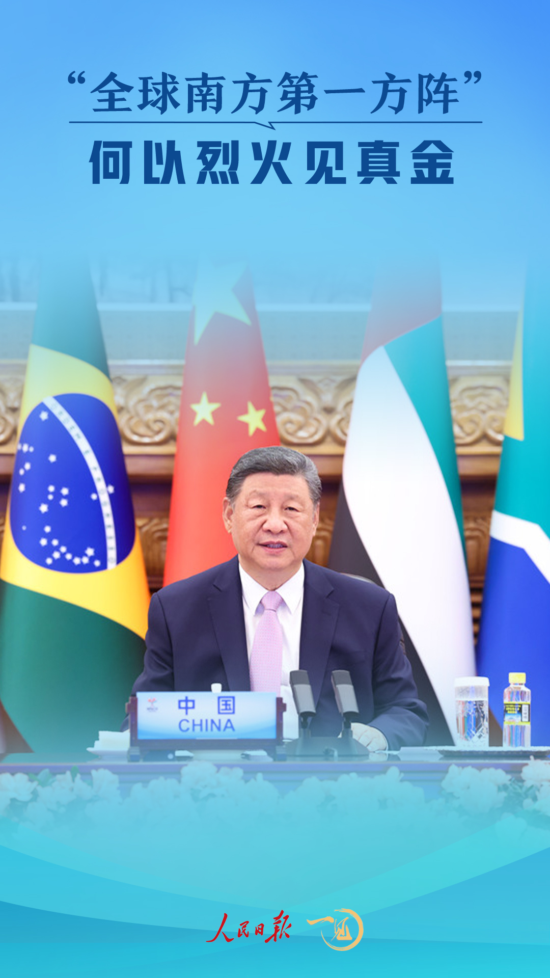 “無論國際形勢如何變化,中國始終心系‘全球南方’、扎根‘全球南方’,支持更多‘全球南方’國家以正式成員、伙伴國、‘金磚+’等形式加入金磚事業(yè),匯聚‘全球南方’磅礴力量,共同推動構建人類命運共同體。”