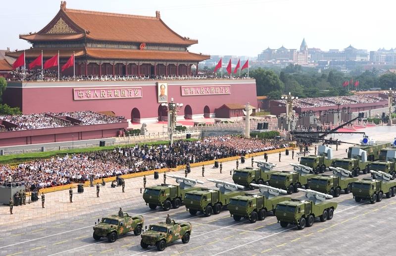 2025年9月3日,紀(jì)念中國人民抗日戰(zhàn)爭暨世界反法西斯戰(zhàn)爭勝利80周年大會(huì)在北京隆重舉行。這是艦載防空武器方隊(duì)接受檢閱。