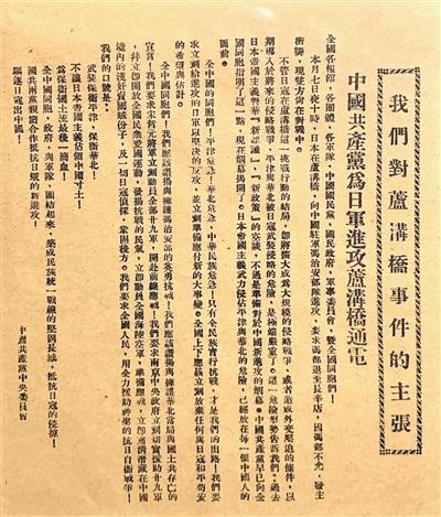 《中國共產(chǎn)黨為日軍進(jìn)攻盧溝橋通電》