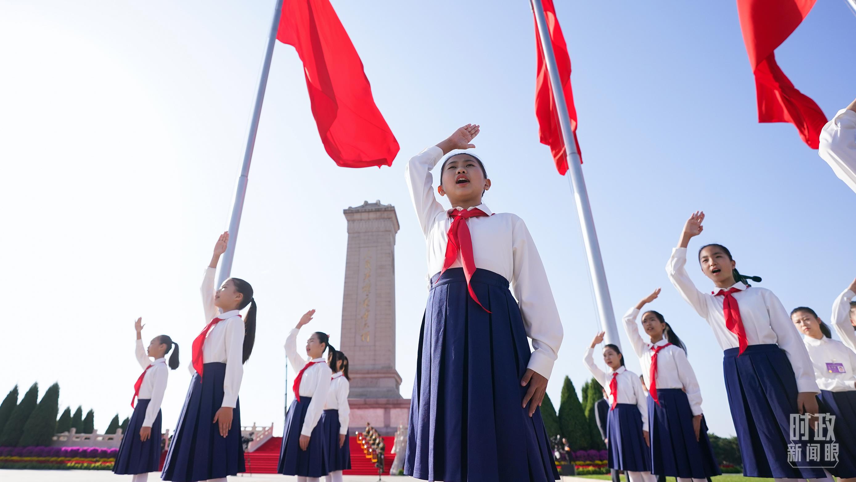 參加烈士紀(jì)念日向人民英雄敬獻(xiàn)花籃儀式的少年兒童。(總臺(tái)記者李晉拍攝)