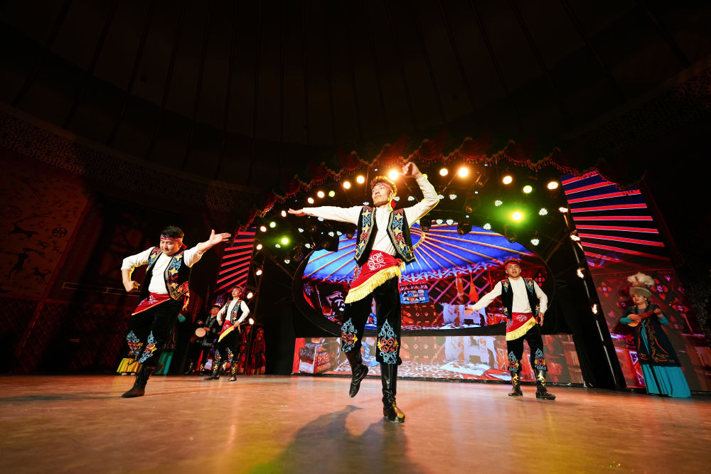 2025年5月1日,《新疆維吾爾自治區(qū)瑪納斯非物質(zhì)文化遺產(chǎn)保護(hù)條例》正式實(shí)施,為保護(hù)這部列入聯(lián)合國教科文組織非遺名錄的柯爾克孜族英雄史詩提供了法規(guī)遵循。這是2025年4月22日,演員在位于新疆阿圖什市的瑪納斯史詩大劇院為游客表演。