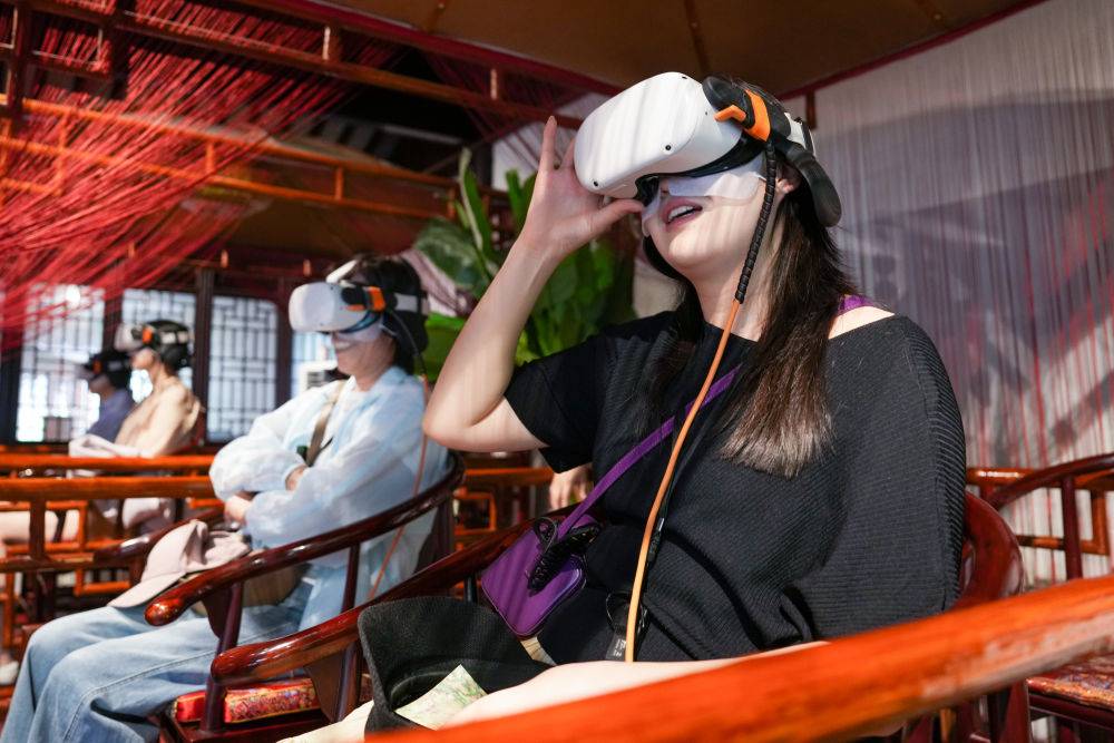2025年5月18日,游客在江蘇蘇州拙政園體驗(yàn)VR漫游。近年來,蘇州不斷推進(jìn)“數(shù)字園林”建設(shè),在園林整體數(shù)字建模、園林要素?cái)?shù)據(jù)庫建設(shè)等方面開展探索,利用數(shù)字技術(shù)創(chuàng)造“數(shù)字云游”VR場景,打造“云游拙政園”“獅林園宇宙”“留園虛擬元宇宙”等項(xiàng)目,營造真實(shí)可感的虛擬空間,讓觀眾沉浸式感受蘇州園林的獨(dú)特魅力。