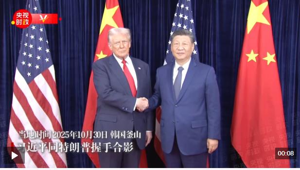 當(dāng)?shù)貢r(shí)間10月30日中午,中美元首會(huì)晤開始前,習(xí)近平同特朗普握手合影。