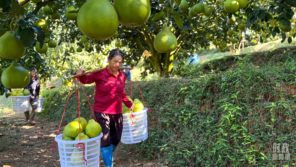 △南福金柚種植基地,柚林迎來豐收。(總臺記者吳媚苗、總臺央視記者鄂介甫拍攝)
