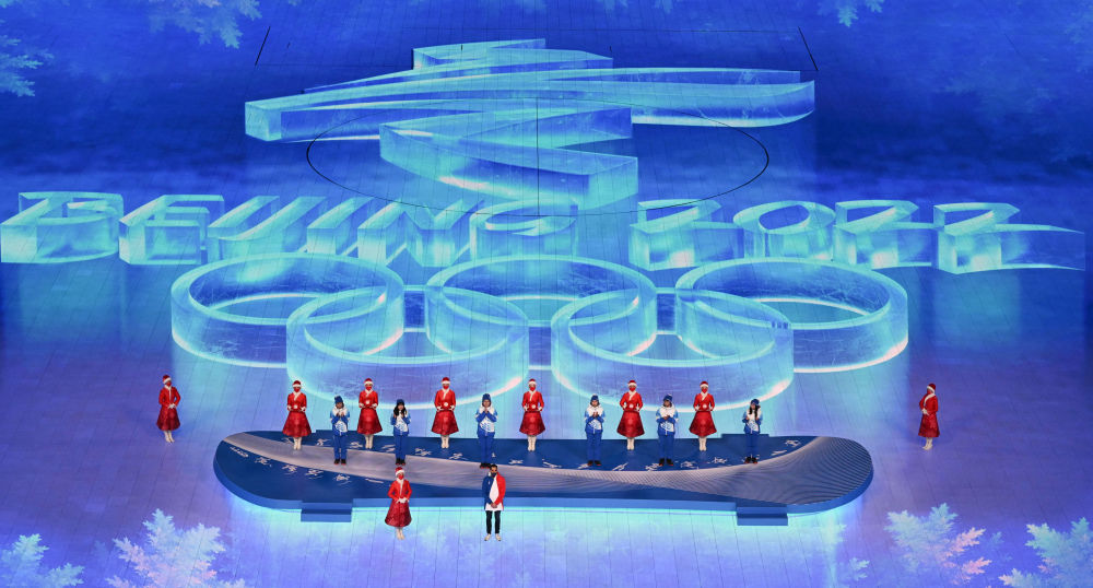 2022年2月20日晚,北京第二十四屆冬季奧林匹克運(yùn)動(dòng)會(huì)閉幕式在國家體育場(chǎng)舉行。這是向志愿者致謝環(huán)節(jié)。新華社記者 李賀 攝