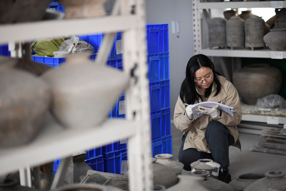 2024年3月5日,陜西省考古研究院女子考古隊隊員張佳楊在文物庫房登記文物信息。成立于2020年的女子考古隊先后完成包括蔣劉仰韶晚期環(huán)壕聚落、大堡子西漢陵邑墓地等重要發(fā)現在內的基本建設考古項目數十項。