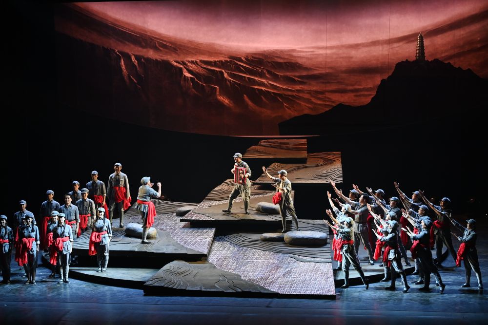 2025年7月29日,演員在陜西延安的金延安文化旅游產業(yè)園區(qū)表演紅色歌舞劇《延安十三年》。近年來,延安市以“傳承紅色基因”為目標,采用新科技、新理念、新手段,推出多部高質量劇目。生動感人的故事情節(jié)、富有沖擊力的視聽效果、沉浸式的觀賞體驗——守正創(chuàng)新的表達方式讓紅色文化“活起來”。