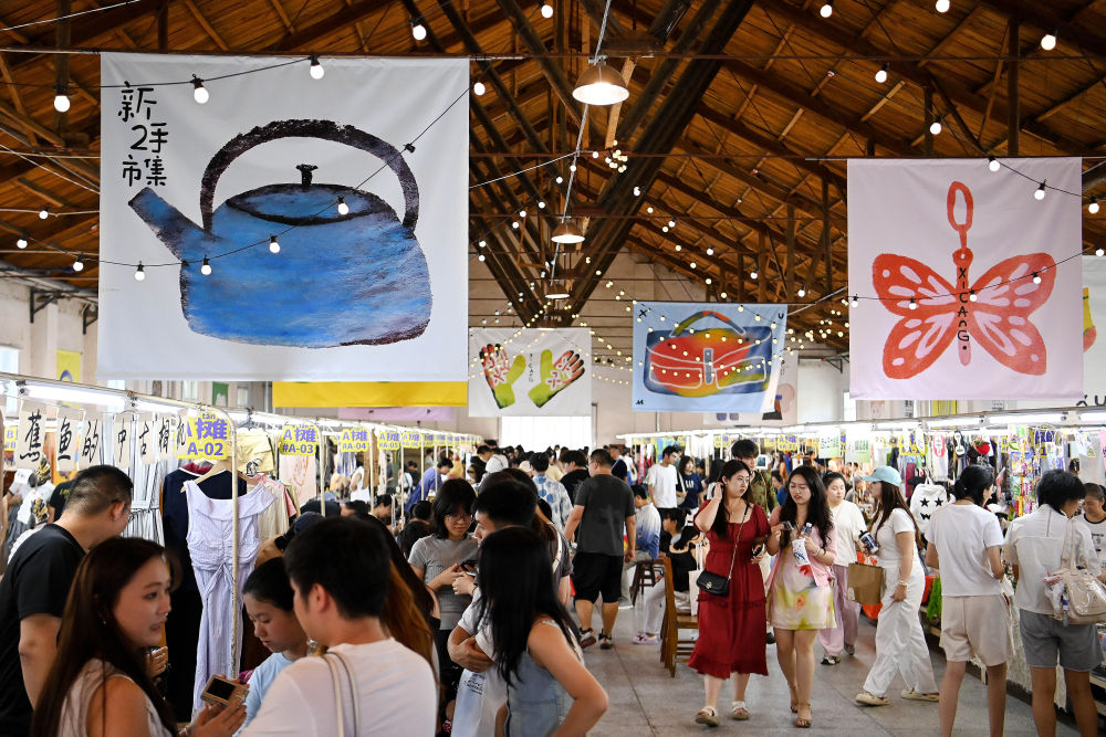 2025年7月5日,游客在西安西倉市集文創(chuàng)公園內的“新二手市集”上參觀游覽。2024年以來,西安對西倉區(qū)域實施“微更新、輕改造”,在保留核心區(qū)傳統(tǒng)集市風貌的基礎上,升級改造原有設施,建設西倉市集文創(chuàng)公園,打造“復合型文化消費新場景”;通過引入創(chuàng)新業(yè)態(tài)、開設“新二手市集”等方式,讓咖啡潮玩、非遺體驗、城市記憶展覽等年輕化元素與市井煙火相融共生,使老城核心區(qū)在“微更新”中持續(xù)煥發(fā)新活力。