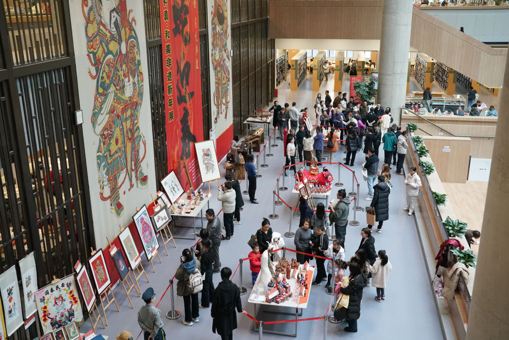 2025年1月1日,觀眾在位于西安的陜西省圖書館高新館區(qū)內參觀一場非遺文化展覽。西安市持續(xù)推出各類主題和形式的公共文化活動,為市民、游客提供豐富的精神文化生活。